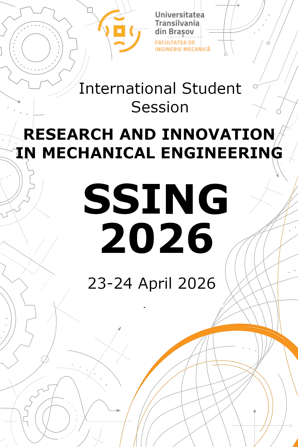 The Department of Mechanical Engineering in collaboration with Schaeffler Romania, the Academy of Technical Sciences of Romania – ASTR, the Romanian Society of Theoretical and Applied Mechanics – SRMTA, the Romanian Association of Tensometry and Materials Testing – ARTENS, the General Association of Engineers of Romania-AGIR, Solid Mechanics Institute of the Romanian Academy - IMSAR and the Romanian Association of Fracture Mechanics of Romania – A.R.M.R., organizes the 6th edition of the International Student Session – Research and Innovation in Mechanical Engineering SSING 2026. Given the importance of scientific research among students and master's students, we propose to organize a scientific session at the national level. The mission assumed by the International Student Session – Research and Innovation in Mechanical Engineering 2026 - SSING 2026 is to provide students and master's students with the opportunity to present their scientific research results. |